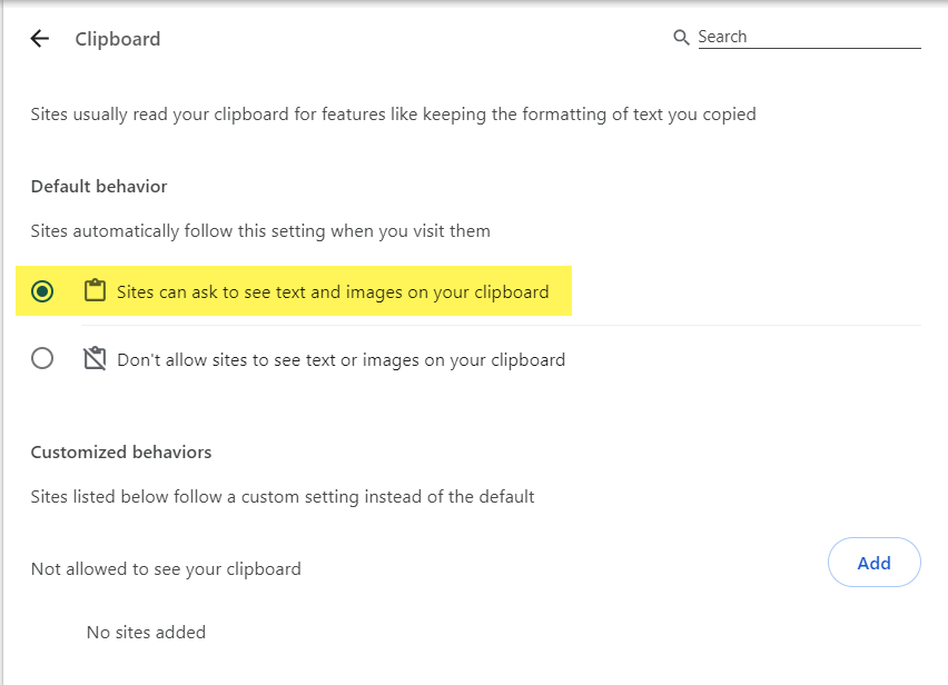 If the clipboard (copying and pasting) does not seem to be working when logged into V2 using the browser, do the following to reset Chrome to allow the clipboard: