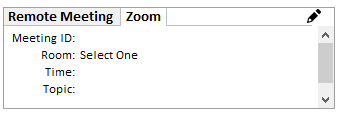 You can overwrite the default information by clicking on the edit icon button with the Zoom tab selected. The ZoomMeeting window will display.