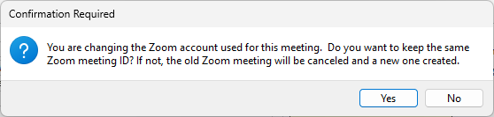 Answering “Yes” will reassign the Zoom meeting to the new user as the host.