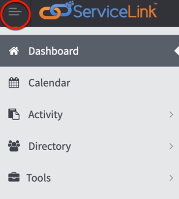 Note that you are able to hide and show the side menu by clicking on the icon with three lines as shown below.