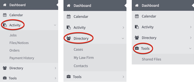 - ‘Directory’ gives you access to your cases and the related information to work from a case level. You can also view your service provider and contacts here.